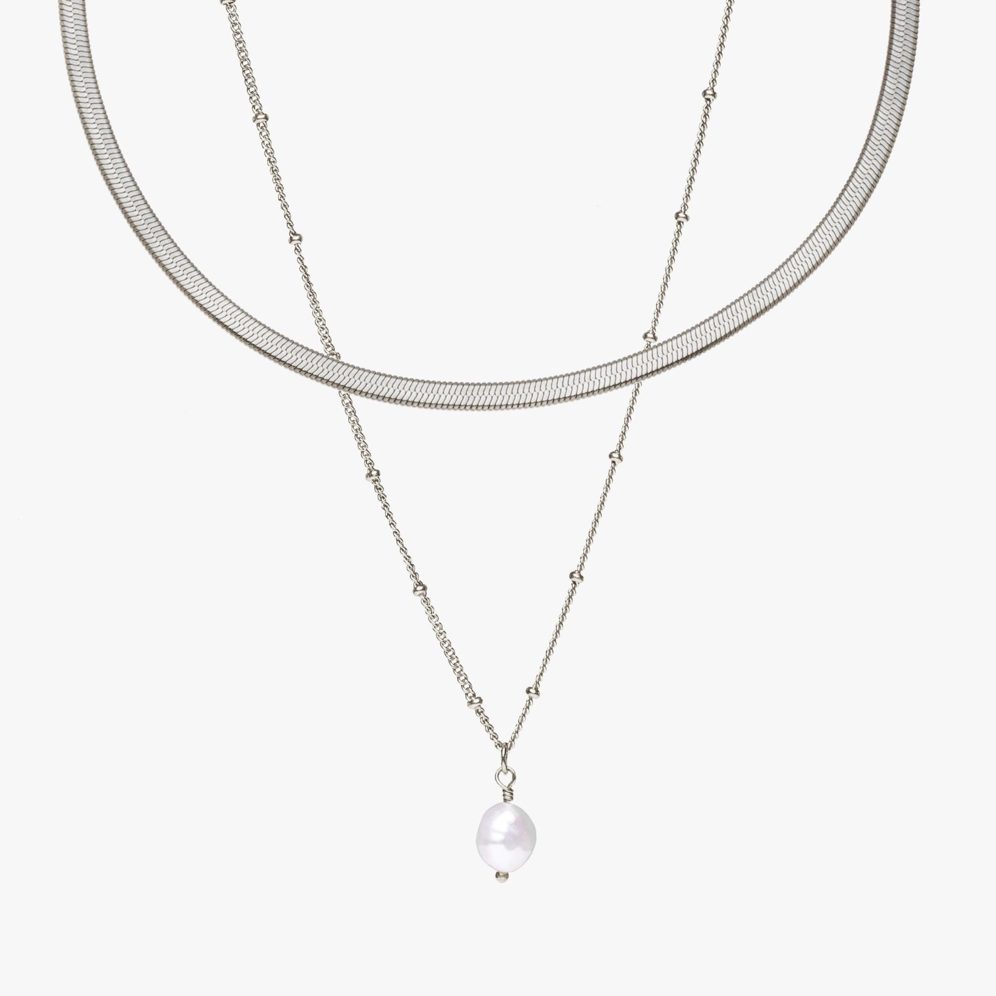 • Bundle includes: a Herringbone Choker and a Baroque Pearl Pendant (2 pieces of jewelry)